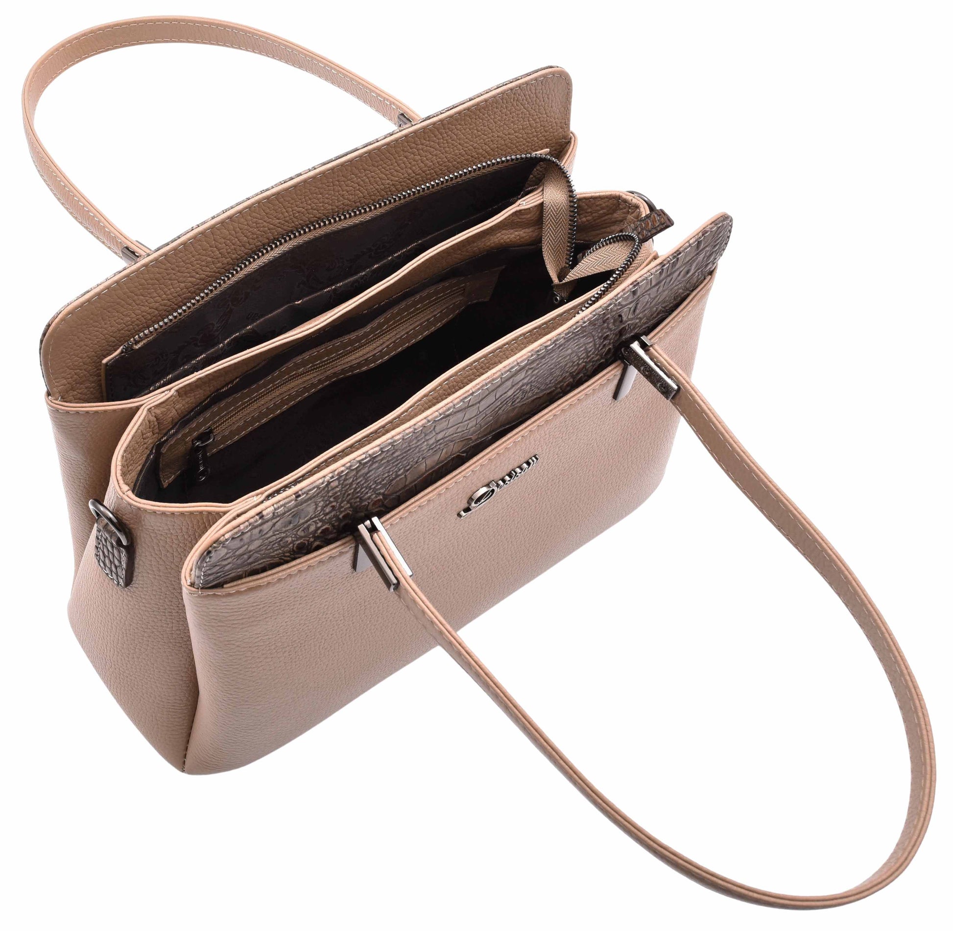 - Inside open compartment, seperate zip pocket and a slot for a phone