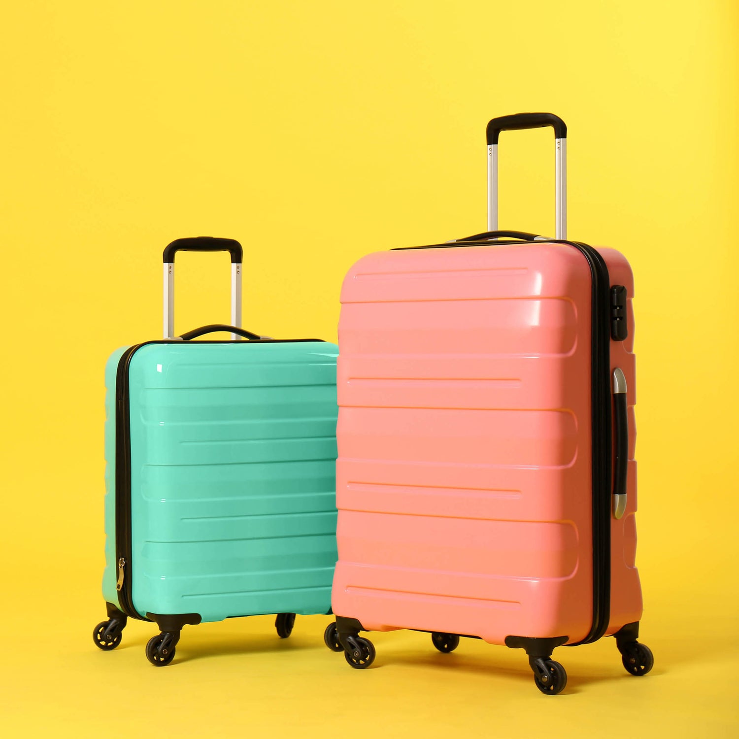 Hard shell suitcases are equipped with durable handles that are integrated into the design.